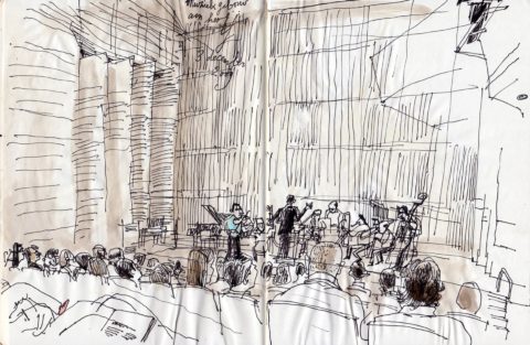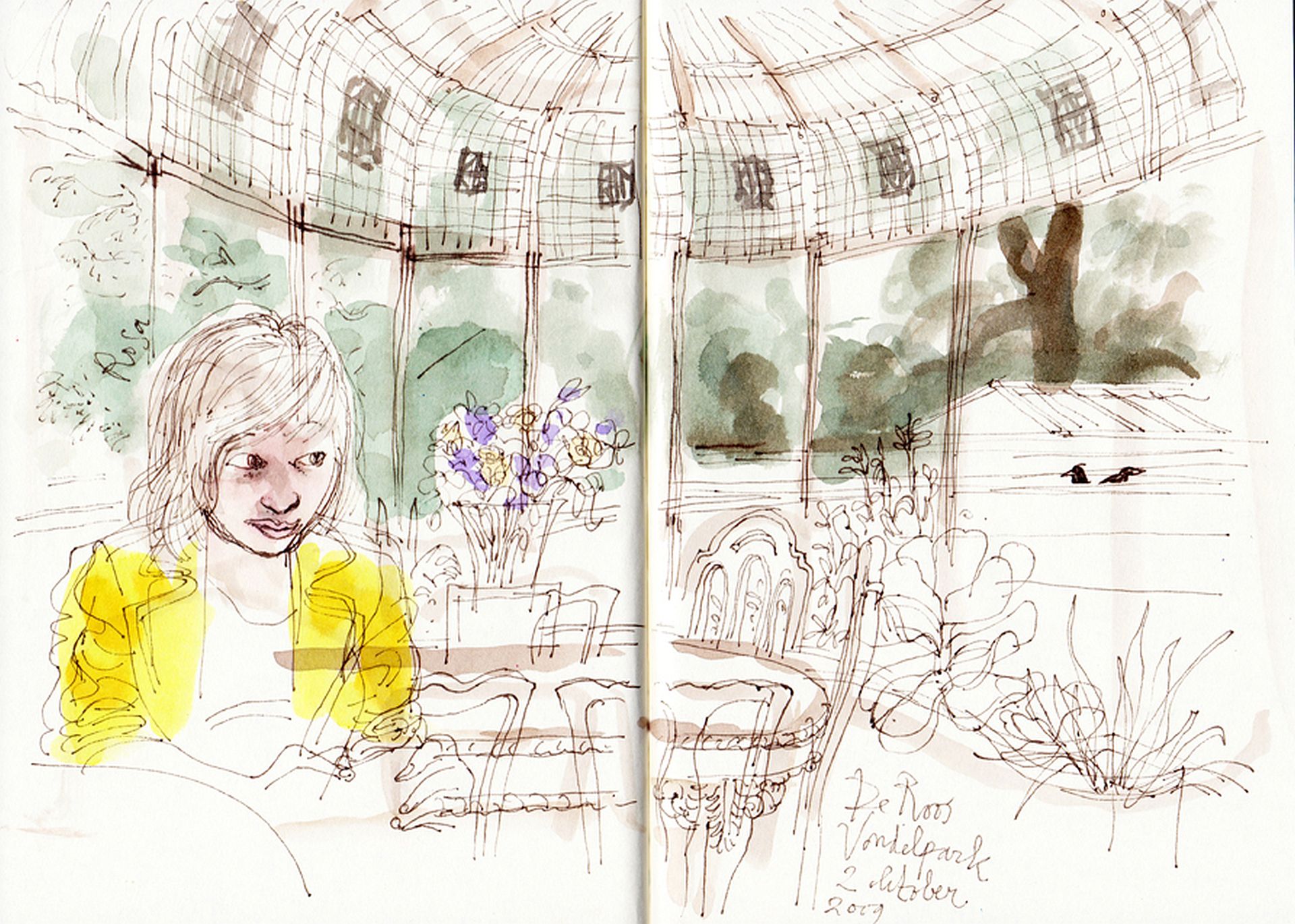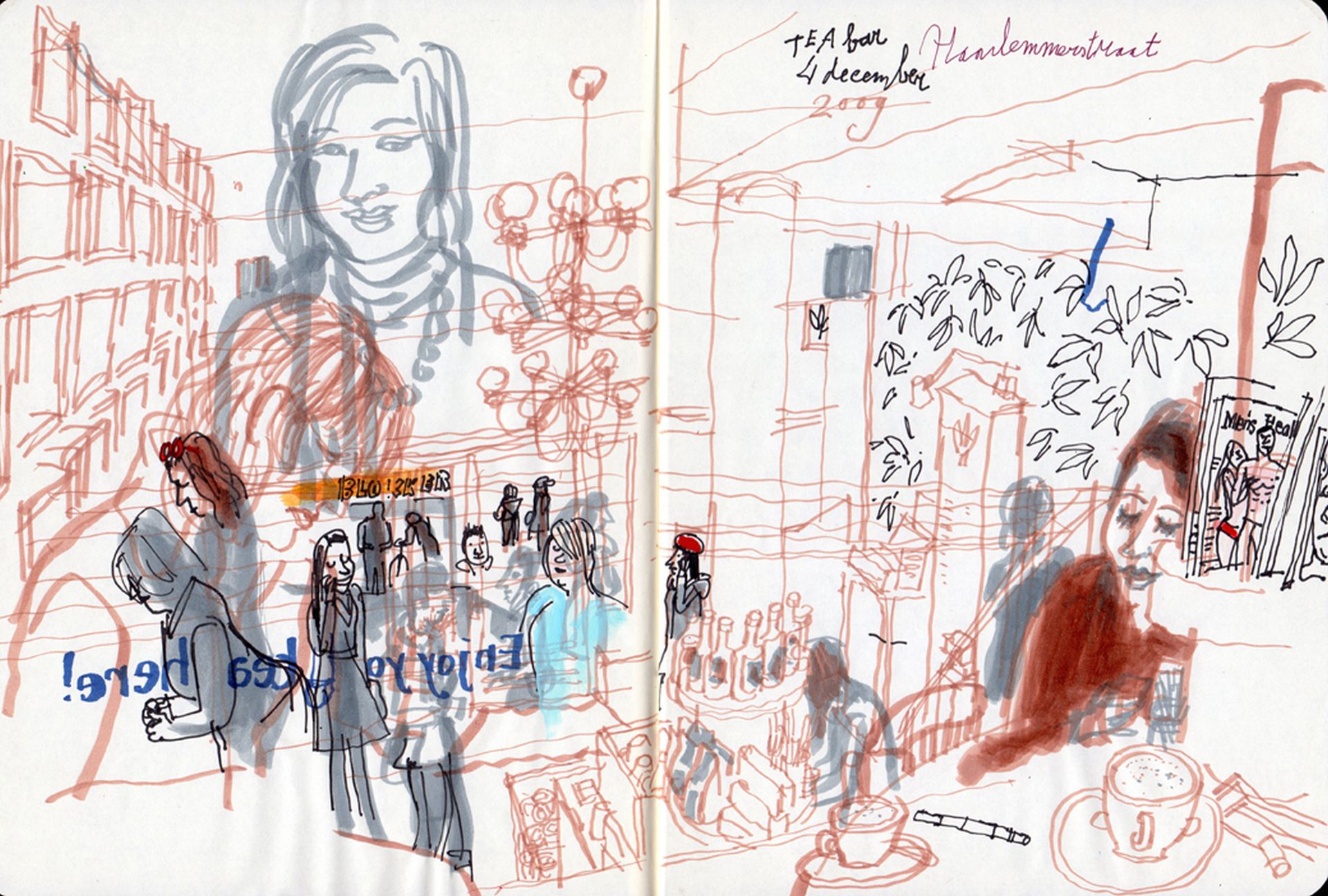 Kloveniersburgwal. Vanuit het Compagnietheater
